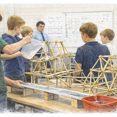 A studio-style design sprint for post-16 learners. Teams prototype a modular, climate-resilient structural system using advanced geometry and structural thinking, then test performance and present professionally with sustainability considerations—mirroring real architecture and engineering workflows.